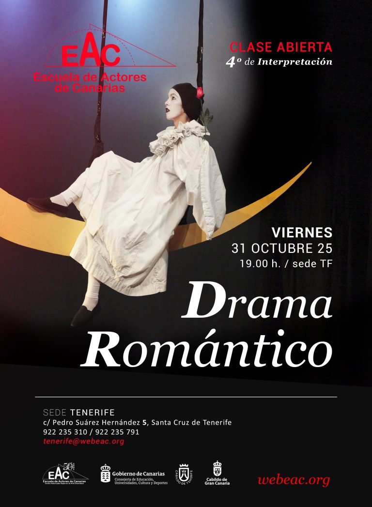 El alumnado en fin de carrera debe ser capaz de moverse ágilmente entre distintos registros teatrales, aplicando las técnicas necesarias para conseguir momentos emocionales variados e incluso contradictorios. Reconocemos en el Drama Romántico no solo su importancia en el panorama de la historia del teatro, sino también, y sobre todo, el gusto general de los contrastes: lo cómico y lo trágico, lo popular y lo elitista, el dolor individual y el dolor cósmico. La alternancia de estas motivaciones, a veces exasperadas, hace del drama romántico una óptima palestra para cimentarse y experimentarse en la interpretación. El lema que ha caracterizado el Módulo de Drama Romántico ha sido la definición de Charles Baudelaire : El romanticismo es una manera de sentir, y a partir de este tema, el alumnado ha elegido no solo textos propios de la historia del Drama Romántico: Leonce y Lena, de G.Buchner, El trovador, de Antonio Garcia Gutiérrez, Los bandidos, de Fiedrich Schiller ,sino también, adaptaciones de fragmentos de novelas como Cumbre Borrascosa, de E. Brontë, Frankestein, de M. Shelley, y de la novela contemporánea El Perfume, de P. Suskind.