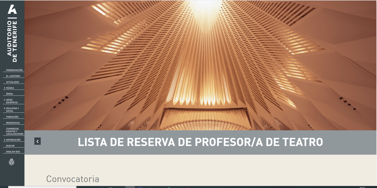 Inicio » Convocatoria pública para la constitución de una lista de profesor/a de teatro para contrataciones temporales para Auditorio de Tenerife