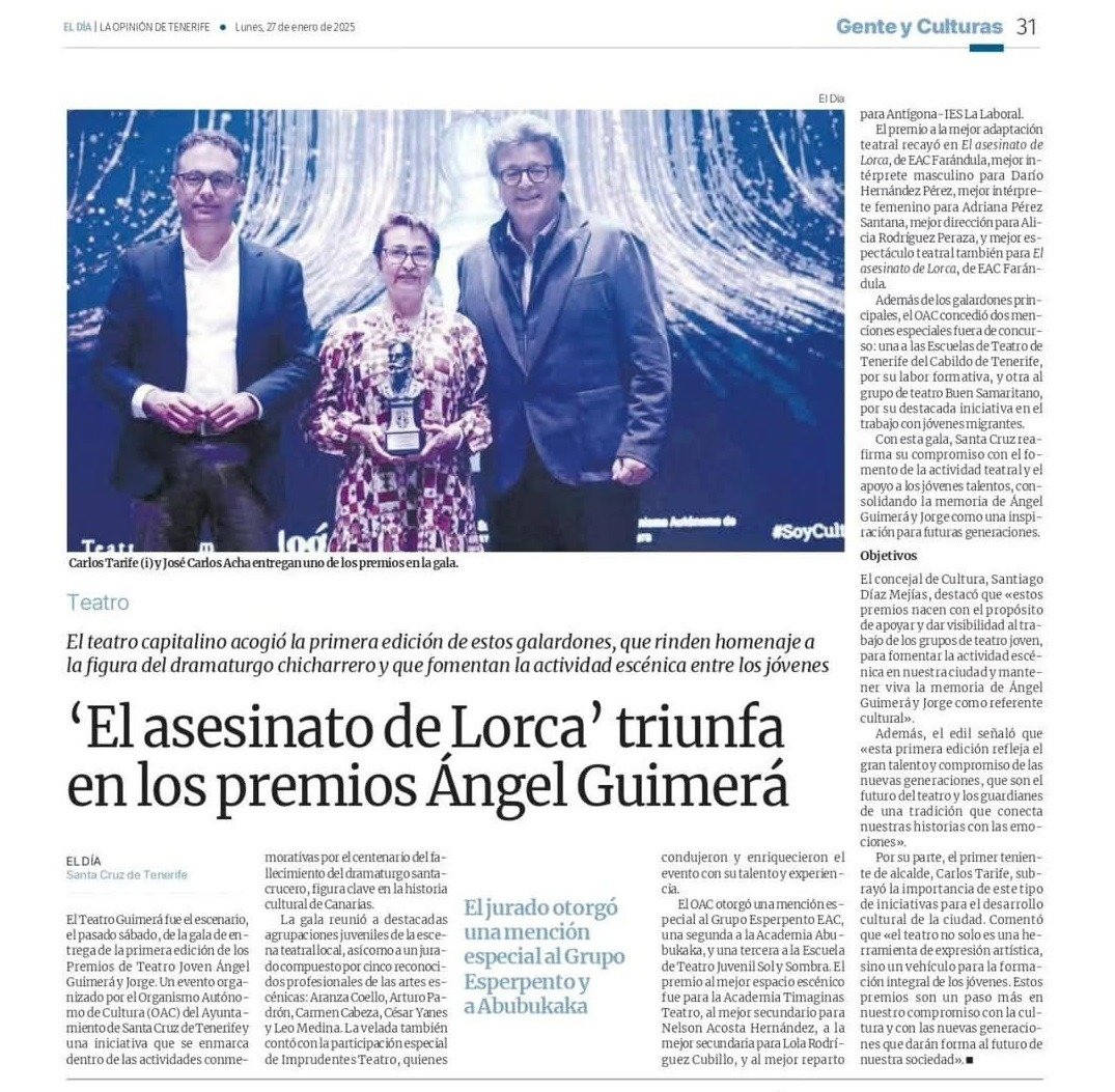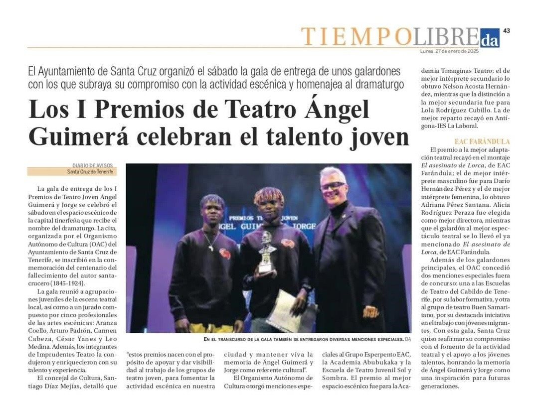 Los grupos de Teatro Juvenil de la EAC han sido galardonados en los Premios de Teatro Joven «Ángel Guimerá y Jorge»