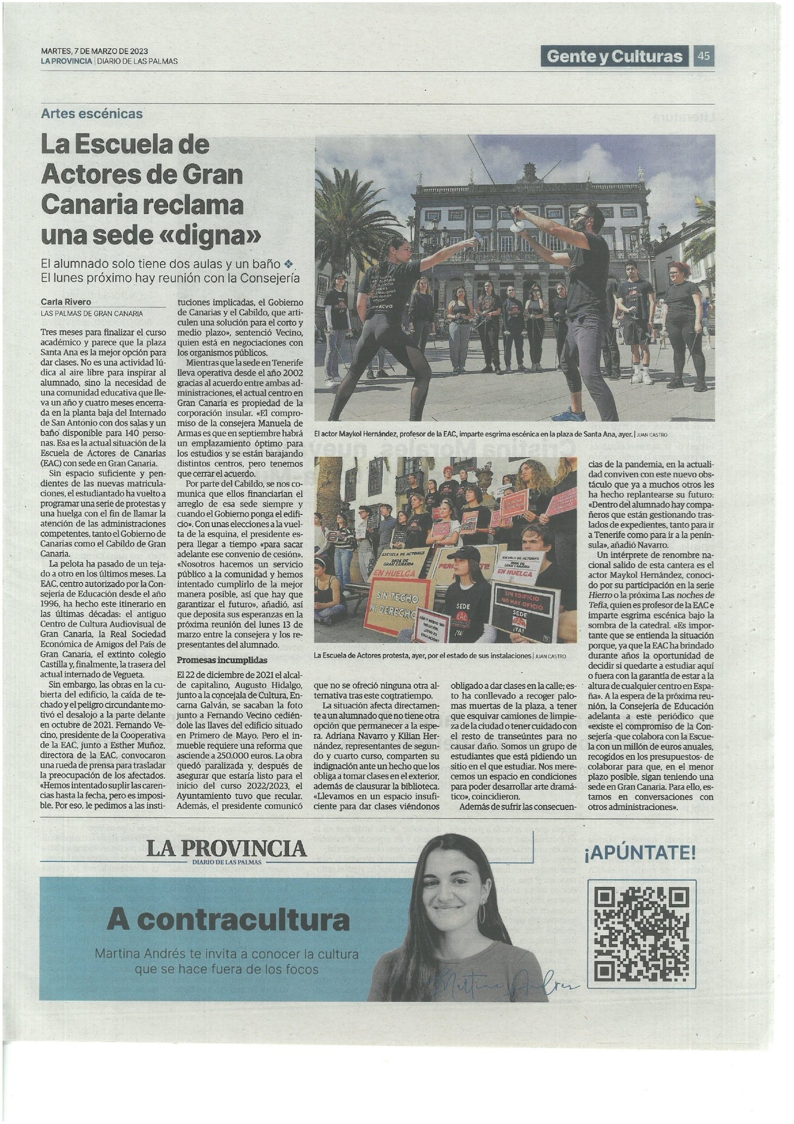 Clases en la calle y sede precaria: la Escuela de Actores de Gran Canaria reclama una «educación digna» – La Provincia