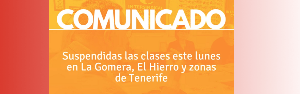 La Consejería de Educación, Formación Profesional, Actividad Física y Deportes del Gobierno de Canarias suspende la actividad escolar (lectiva y no lectiva) este lunes, 16 de diciembre, en las islas de El Hierro y La Gomera, así como en los municipios tinerfeños de Santa Cruz de Tenerife, San Cristóbal de La Laguna, Tegueste, Tacoronte, Candelaria y El Rosario, debido a la actual situación meteorológica.