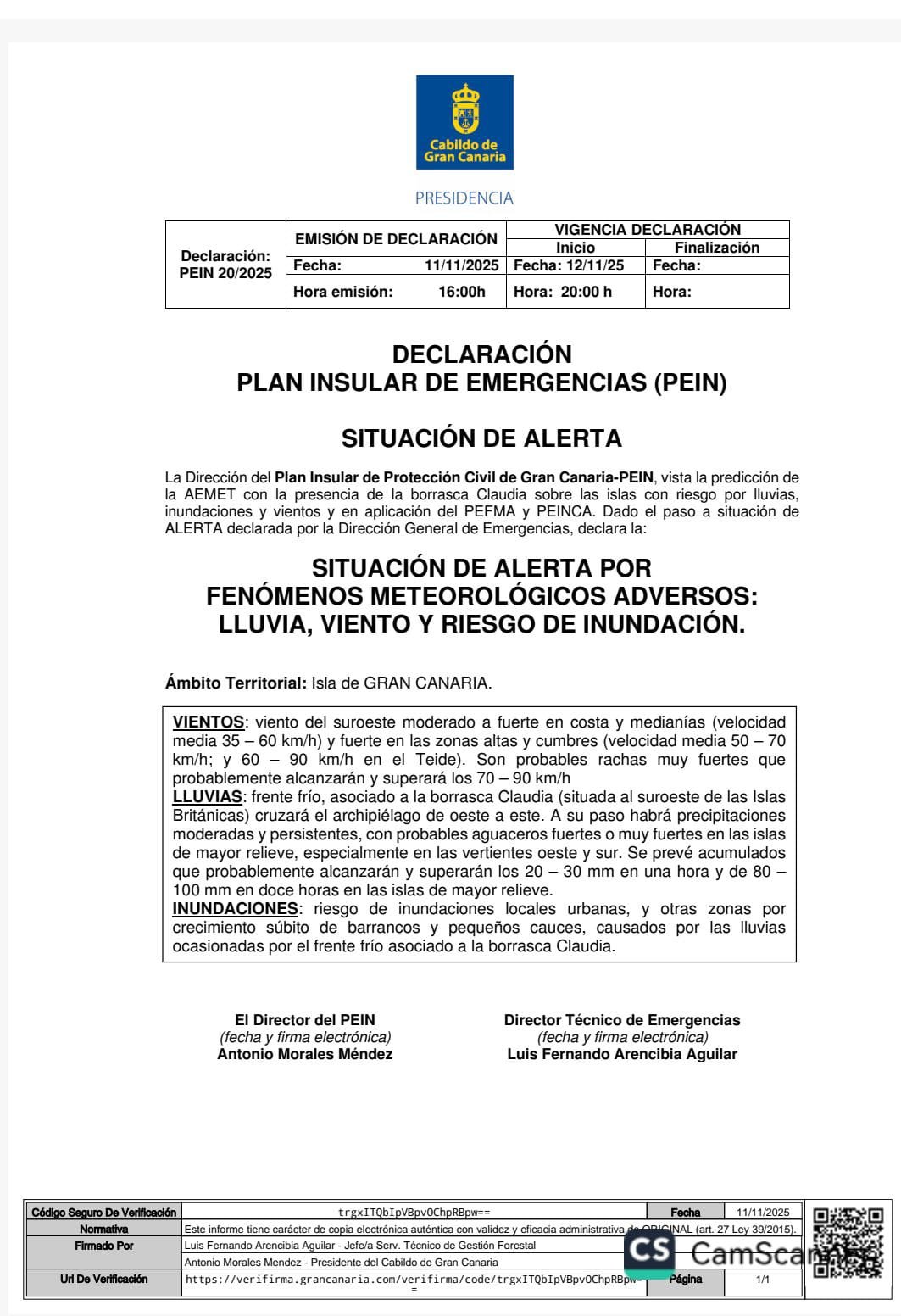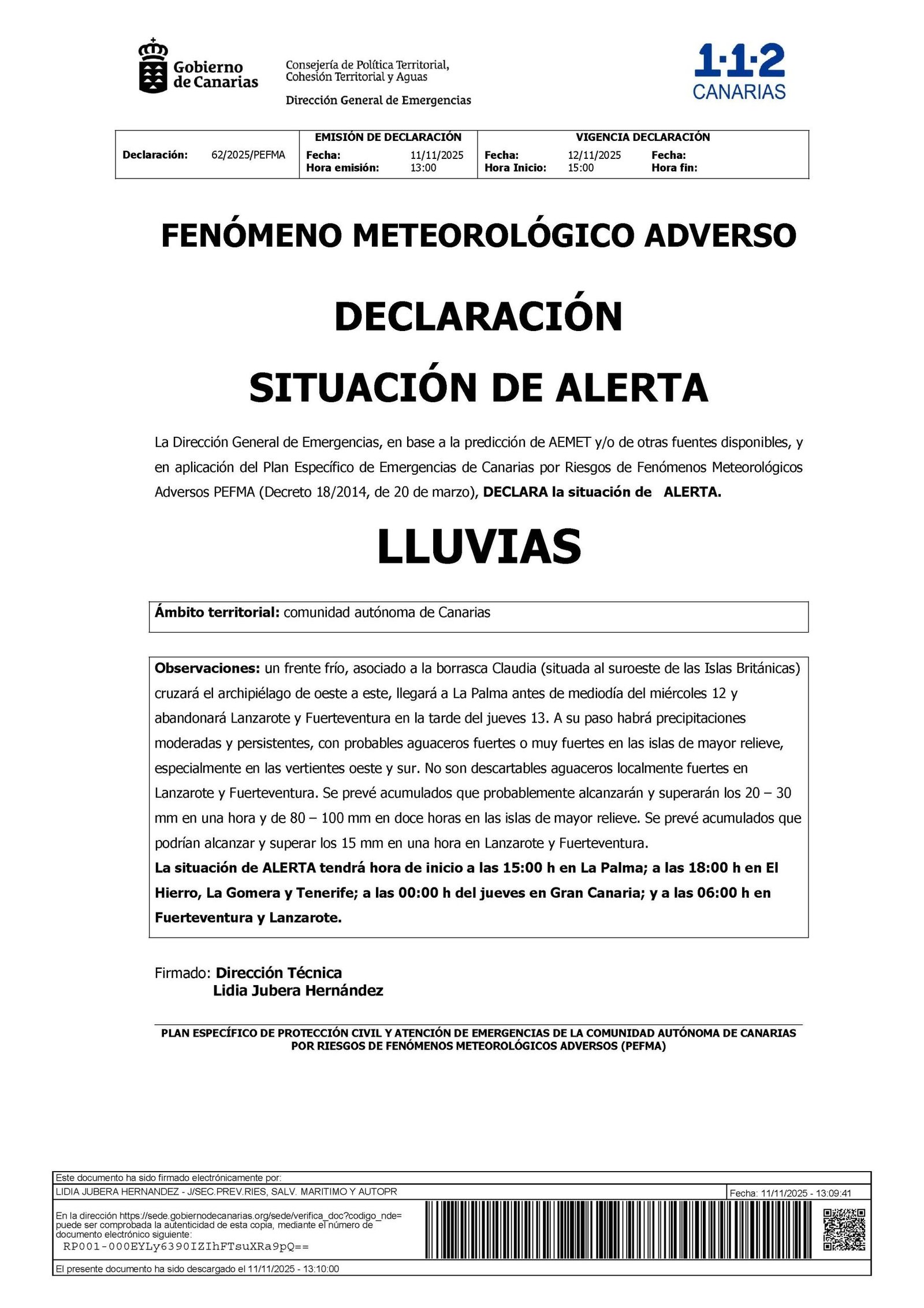 Urgente: miércoles 12 noviembre 2025 a partir de las 15 horas. Suspensión de actividad lectiva por fenómenos meteorológicos adversos en todas las islas de la provincia occidental (Tenerife, EL Hierro, La Palma y La Gomera)