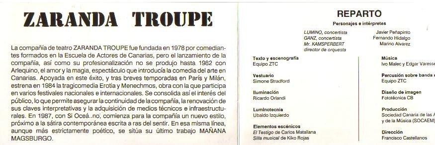 Elenco: Javier Peña / Marino Álvarez / Fernando Hidalgo